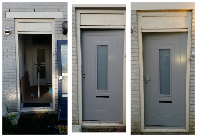 Bestaande voordeur vervangen door deze moderne deur met meerpuntsluiting, in plaats van de losse sloten.